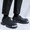 Black matte leather shoes men's design sense round head personality trend niche casual thick-soled small leather shoes 20242-R