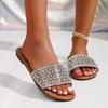 Large size flat-bottomed slippers women's 2025 summer new fashion outer wear non-slip hot diamond word with cool slippers women
