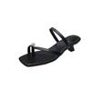 French small fragrant style fine heel large size slippers women's 2025 summer new square head pearl cover toe cool slippers women