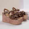 Plateausandalen mit hohen Absätzen, einteilig, Sommer 2025, neu, Oberfläche mit Leopardenmuster, Keilabsatz aus Hanfseil, Peep-Toe, Übergröße