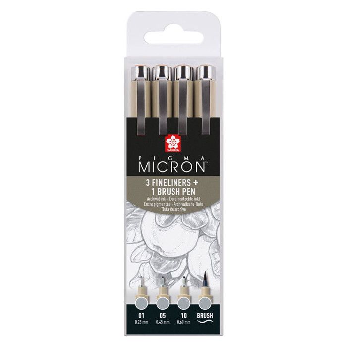 Filzstifte - Zeichnen - Skizze - Pigma Micron 05 - Sakura - Hellkaltgrau - 4 Größen