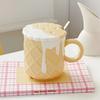1 Stück 400 ml Keks-Muster Kaffeetasse mit Deckel und Löffel Keramik Kaffeetassen Niedlich Kawaii Wasserbecher Sommer Winter Trinkgeschirr Geschenke