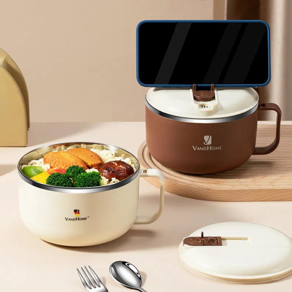 900/1300ml 304 Edelstahl Bento Lunchbox mit Griff, Ablauf Instant Nudelschüssel Lebensmittelbehälter für Studenten Erwachsene