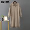GMXIA Damen Herbst Winter Gestrickte Lockere Große Einfarbige Polo Kragen Kleider mit Futter