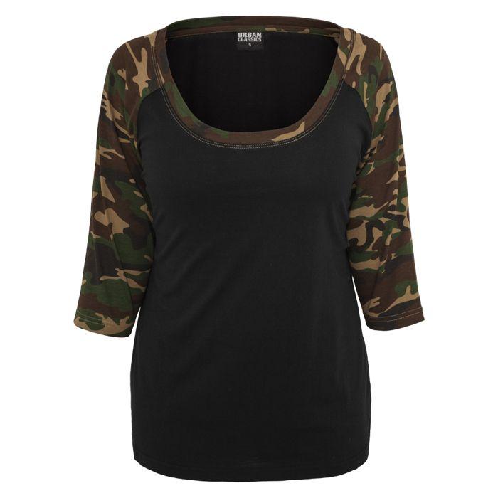 T-shirt femme - URBAN CLASSICS - Raglan 2.0 - 100% Coton - Manches trois-quarts - Col large