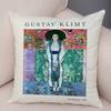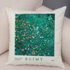 Gustav Klimt Grüner Blumengarten Flora Kissenbezug Beidseitig Dekor Nordischer Druck Kissenbezug Plüsch Kissenbezug für Sofa Zuhause