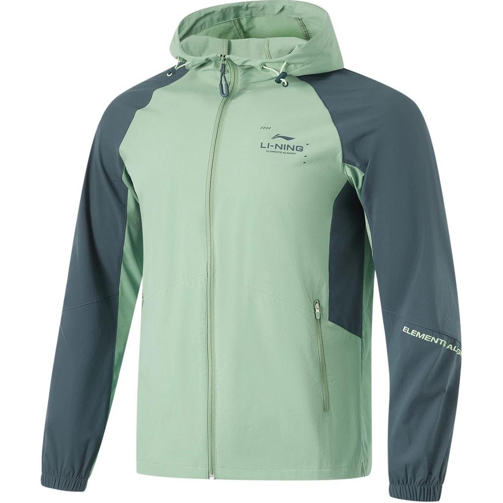 Li Ning Fitness Series Color Block Buchstaben Reißverschluss Kapuzenjacke Bequem Atmungsaktiv Sport Windjacke Herren Oberbekleidung Seegrün Dunkelblau AFDU157-5
