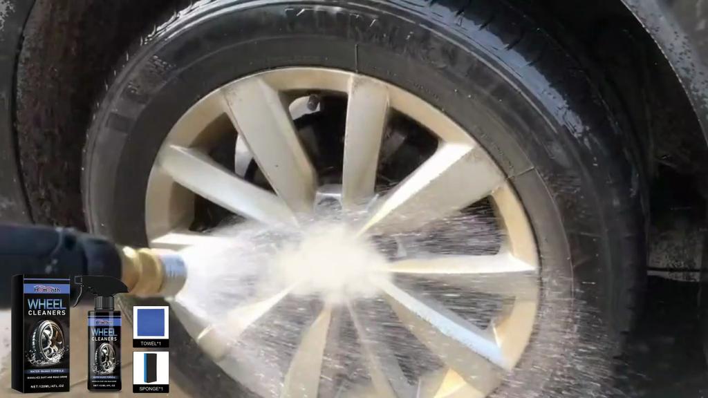 1. Sprühen Sie den Reiniger auf die Autoräder, wo sich viel Schmutz befindet.