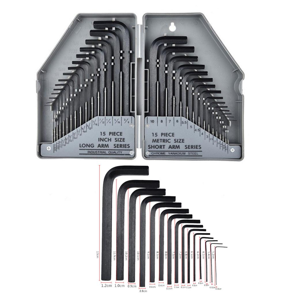 Insgesamt 30 Stück: Es gibt 30 Stück Innensechskantschlüssel mit unterschiedlichen Spezifikationen, die sicherlich Ihre verschiedenen Arbeitsanforderungen erfüllen werden, um die Bedienung zu erleichtern.