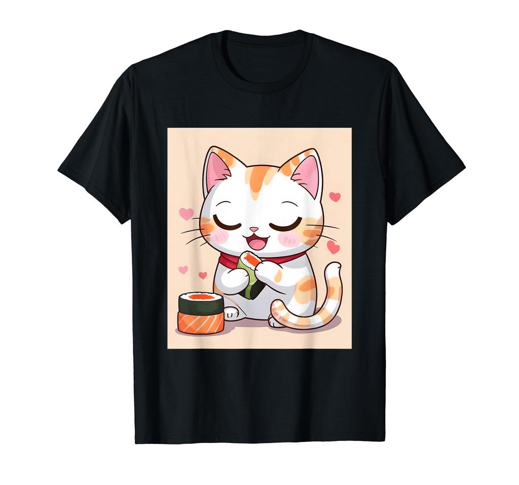 Dinge bedruckt Kawaii, Katze, Sushi, niedlich, Hirse, Japanisch, T-Shirt