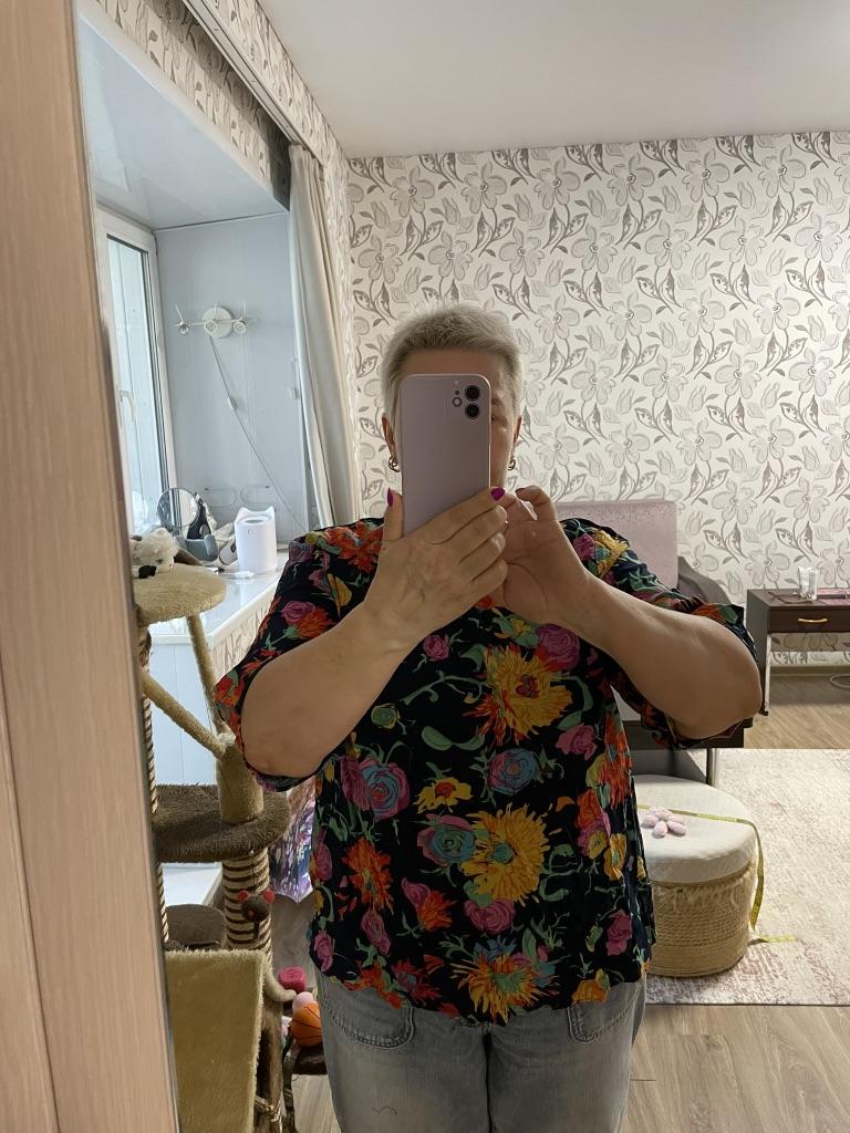 Für Größe 50 2XL ausgezeichnet 💯👍 Schöne leuchtende Farbe, nicht kitschig ☝️ Der Stoff ist natürlich, dünn, angenehm. Der Ärmel geht bis zum Ellbogen, ist am Ende leicht verengt, daher sieht er schön aus, nicht mit Gummizug.
