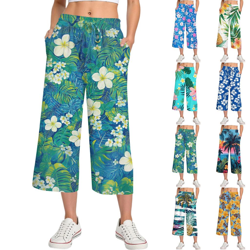Damen Sommer Hohe Taille Bedruckte Freizeit-Sportbekleidung Lässige Cropped-Hose Weite Hose
