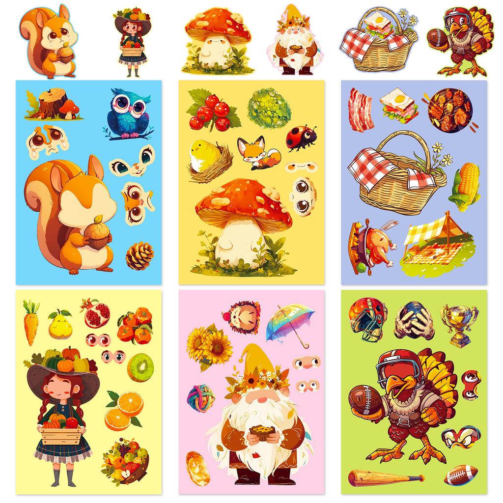 6 Thanksgiving Puzzle Stickers Autumn Harvest Festival Mushroom Squirrel Parent-Child Interactive Educational Toys Change