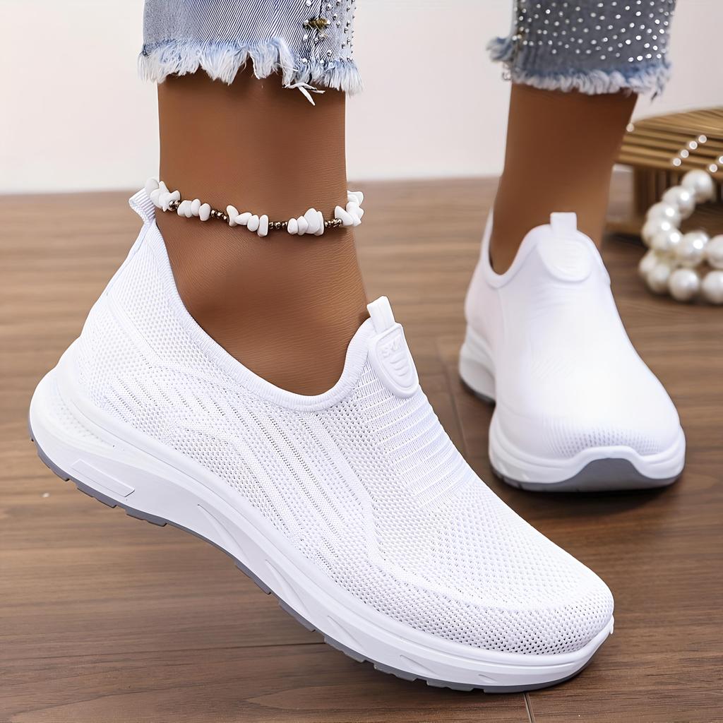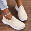 Einfarbige Plateau-Sneaker für Damen, atmungsaktive Slip-On-Outdoor-Schuhe aus Strick, bequeme Sportschuhe mit niedrigem Oberteil