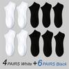 10 Paar Klassische Schwarz/Weiße Business Herren Baumwollsocken Sommer Herbst Hohe Qualität Damen Einfarbig Knöchel Bootssocken