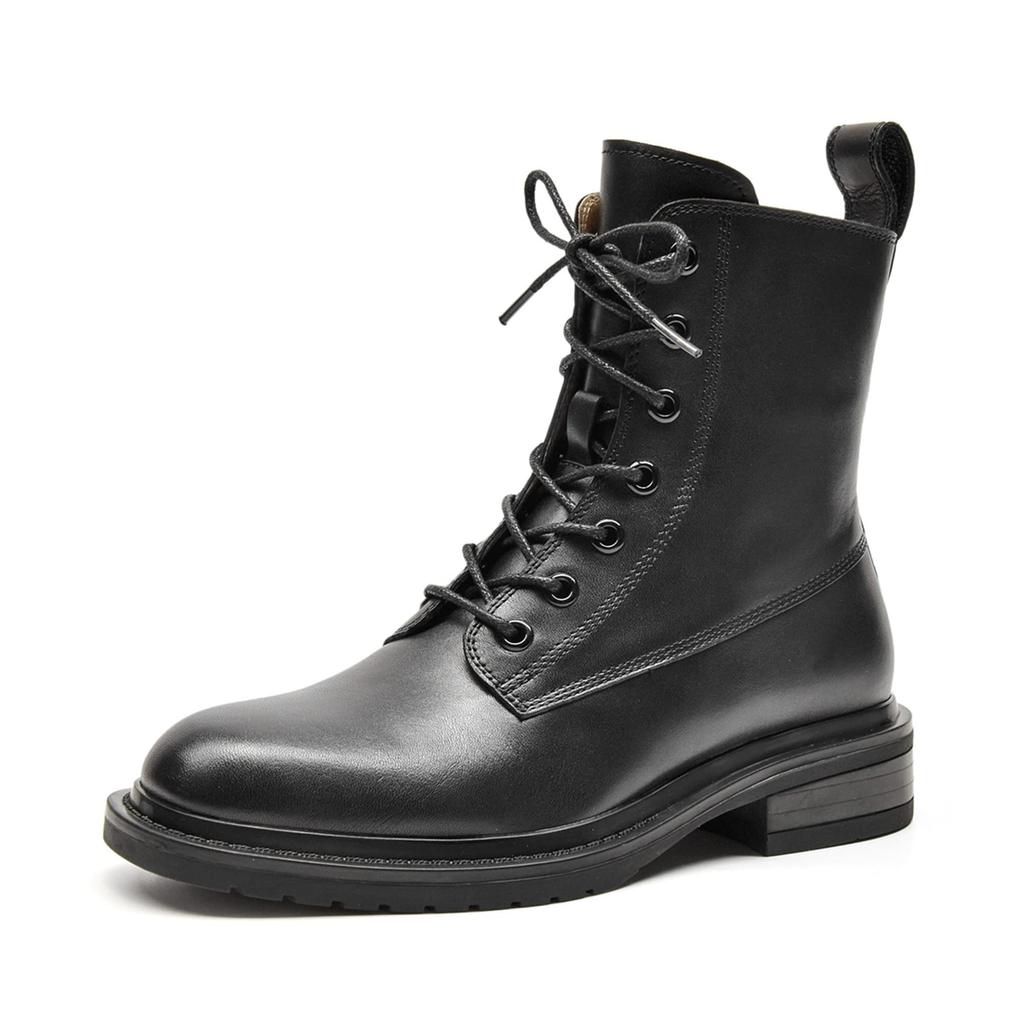 Genuine Side Low Short English [ZUYEE] Women's Lace-up Boots, Leather, Zip, Heel, Lace-up Boots, Boots, Style, Black, 24.0cm
