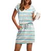 Damenmode V-Ausschnitt Kurzarm Kordelzug mit Tasche Bedruckte Freizeitkleider