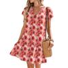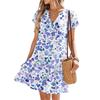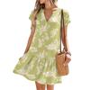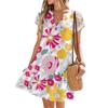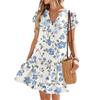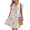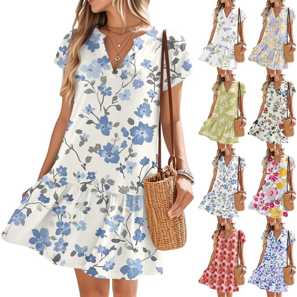 Damenkleider Kurzarm V-Ausschnitt Blumendruck Locker Lässig Temperament Strandkleider