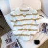 Striped Pattern Collared Sweater Versatile Short Sleeve Knitted Top for Spring Summer Women's Clothing Crop Top