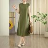 Ärmelloses Kleid Sommer Damen Rücken Schnalle Leinen Stehkragen Literarisches Retro Kleid Lockeres Temperament Dünner A-Linien-Rock
