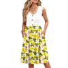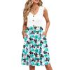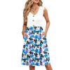 Damen Sommer Druck Kleider Ärmellos Lässig Locker Schwingend Knopfleiste Midi Sommerkleid mit Taschen