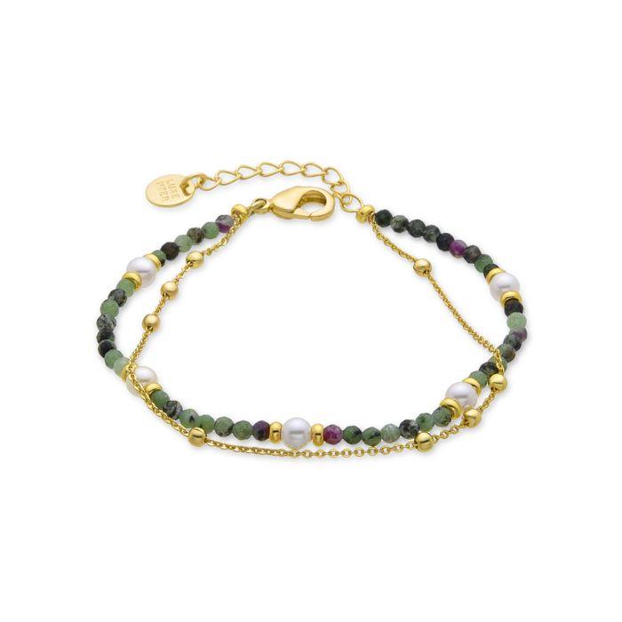 Bracelet - Luxenter - Stripe - finition or jaune 18 carats - Perles blanches - 16 cm + 3 cm d'extension