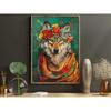 Vintage Maximalist Floral Animal Painting Golden Retriever Lion Owl Peacock Raccoon Wolf Canvas Print Decorations for Wall Art
