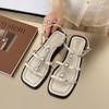 Rhinestone sandals women's 2025 new summer niche design flat-bottomed Roman sandals fairy style women's shoes