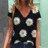 Mode Frühling Schöner Blumenprint Blusen Kurzärmlig V-Ausschnitt T-Shirts Lässig