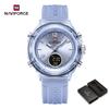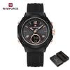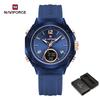 Naviforce Damen Uhr Quarz Zeiger Zifferblatt LCD Digitalanzeige Chronograph Leuchtend Wasserdicht Silikonarmband Unisex Herren Damen Uhr NF7109