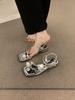 Premium sense pearl set toe silver sandals women's summer 2025 new one-word buckle strap beautiful fairy shoes