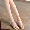 New beautiful rhinestone one-word strap half-drag women's sandals high heels thin heels transparent fairy style slippers