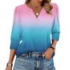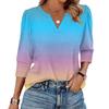 Damenmode Lässig 3/4 Ärmel Print Hemd Damen V-Ausschnitt Oberteile
