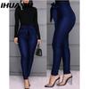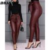 IHUASU Damen Kunstlederhose Hohe Taille Slim Leggings Jeggings Skinny Hose mit Gürtel