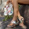 Fashion Printed Herringbone Sandals for Women In The Summer of 2025 Plus Plus Size, with A Strap and Wedge Heel Sandals for Women