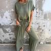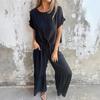 Damen Pendel Baumwolle Leinen Kurzarm Zweiteiler Elegant Reine Farbe