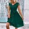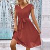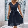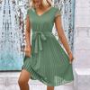 Summer sweet and elegant temperament design sense lace solid color pleated dress