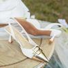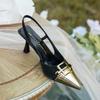 Spleißen B-Schnalle spitze High Heels Damen Riemchen hinten Taschenkopf Sandalen Damen leichter Mund Einzelne Schuhe Farbabstimmung Sommer