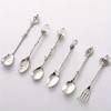 6 stücke Vintage Löffel Gabel Königlichen Stil Gold Geschnitzt Kaffee Tee Löffel Snacks Obst Prikkers Dessert Gabel Besteck Set küche Werkzeug