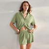 Sommer Baumwolle Damen Kurzarm Top und Shorts 2-teiliges Set Pyjama weiblich Mode Nachtwäsche einfarbig Cardigan Pyjama Set Homewear