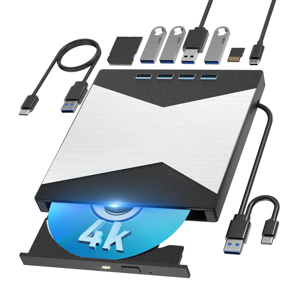 ✅【Kompakt und leicht zu tragen】Unser externes Blu-ray-Laufwerk ist mit einem kompakten und leichten Gehäuse ausgestattet, das leicht zu tragen ist, ohne Platz zu beanspruchen. Das eingebaute Datenkartensteckplatzkabel verhindert Schäden am Datenkabel und wird mit rutschfesten Gummipads geliefert, um ein Verrutschen vom Schreibtisch zu verhindern.. Ob Sie auf einer Geschäftsreise sind, reisen oder es täglich mit sich führen, es passt problemlos in Ihren Rucksack und ermöglicht Ihnen, Ihr Blu-ray HD Video- und Audioerlebnis jederzeit und überall zu genießen.