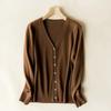 Frühlingswolle V-Ausschnitt Gestrickt Langärmliger Damen Cardigan im Westernstil Einfarbig Koreanische Version Schlicht Vielseitig Jacke Pullover
