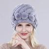 Hot Sell Women Winter Knitted Real Rex Rabbit Fur Hat Fluffy Natural Rex Rabbit Fur Cap Lady Good Elastic Genuine Fur Hats