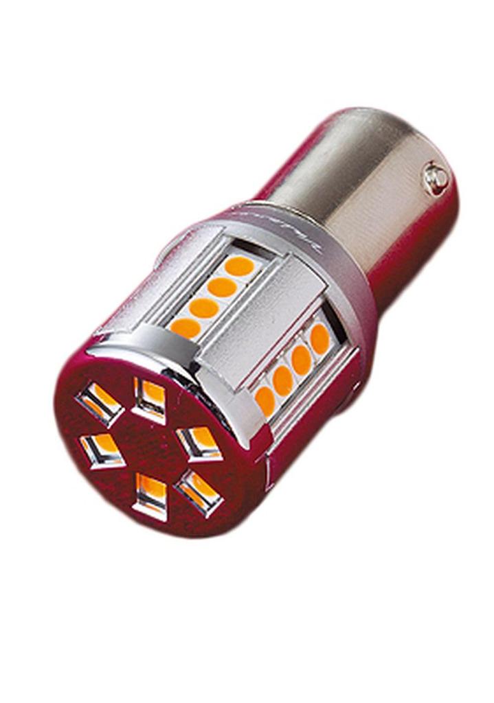VALENTI Jewel LED Glühbirne S25 Einzelstift Blinker Bernstein 1 Stück [180° Winkel] (Motorradlampe) M08-S25S-AM18