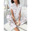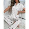 Damen-Pyjama-Set mit Spitzenbesatz, kurzärmliges Oberteil mit Knopfleiste vorne und lange Hose mit Kirschdruck, 2-teilig, Nachtwäsche, Homewear