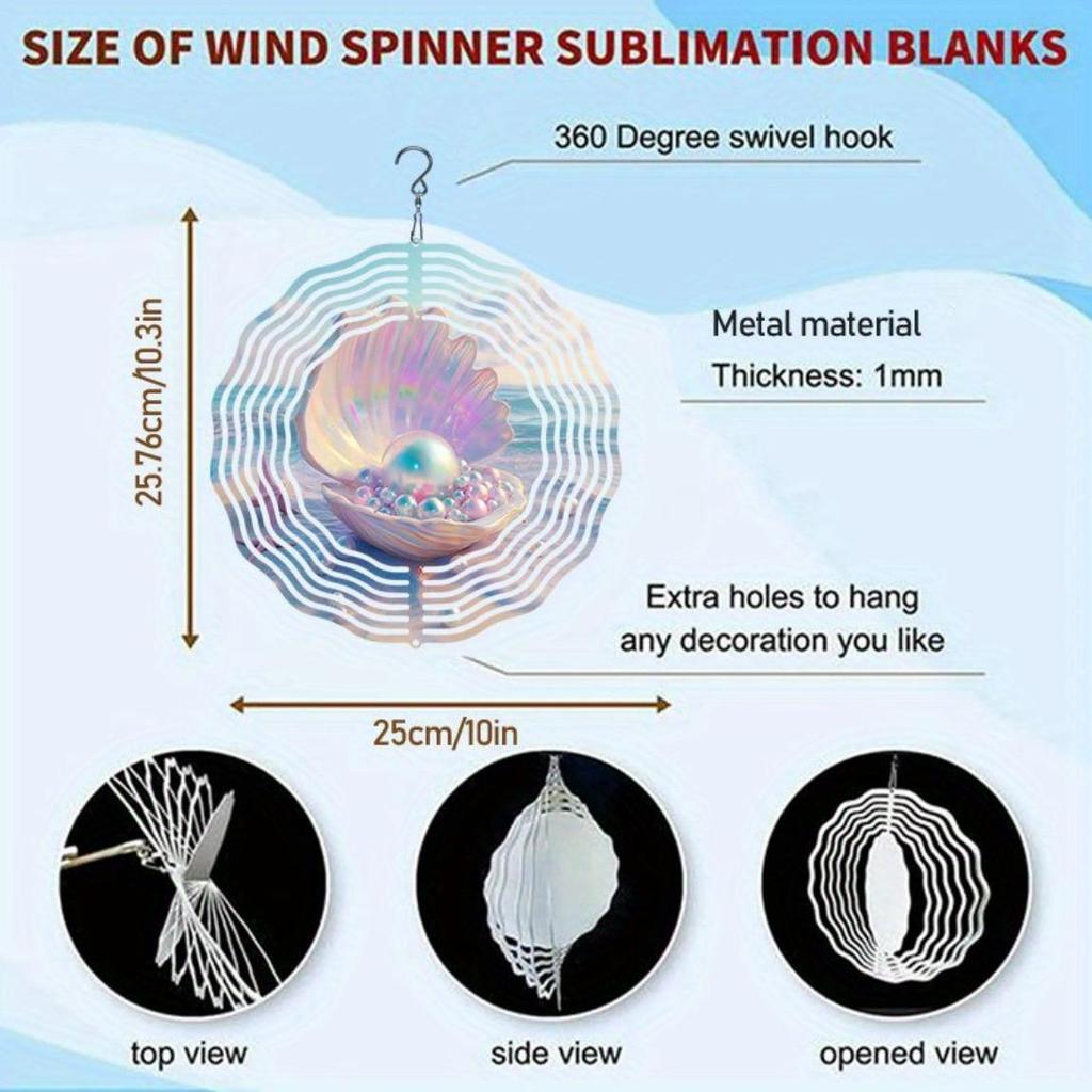 Muschel Perle 2D Mandala Windspiel Metall Rotierende Kunst für Innen Außen Heimdekoration Thanksgiving Weihnachtsgeschenk Küstenstil