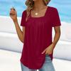 Damen-Oberteil, einfarbig, quadratischer Ausschnitt, kurze Ärmel, gerüscht, atmungsaktiv, kurzärmelig