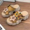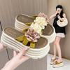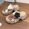 Leather thick-soled hollow flower cool slippers women's handmade retro thick heel fish mouth sandals casual one-word drag