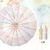 16-Speichen dreifach faltbarer handgeöffneter goldener Skelett-Sonnenschirm, fortschrittlicher Sonnenschirm, Sonnenschutz, Wetter und Regen, hochwertiger Klappschirm