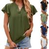Women's Fashion Solid Color Casual Short Sleeve Stitching V-Neck Shirt Top
